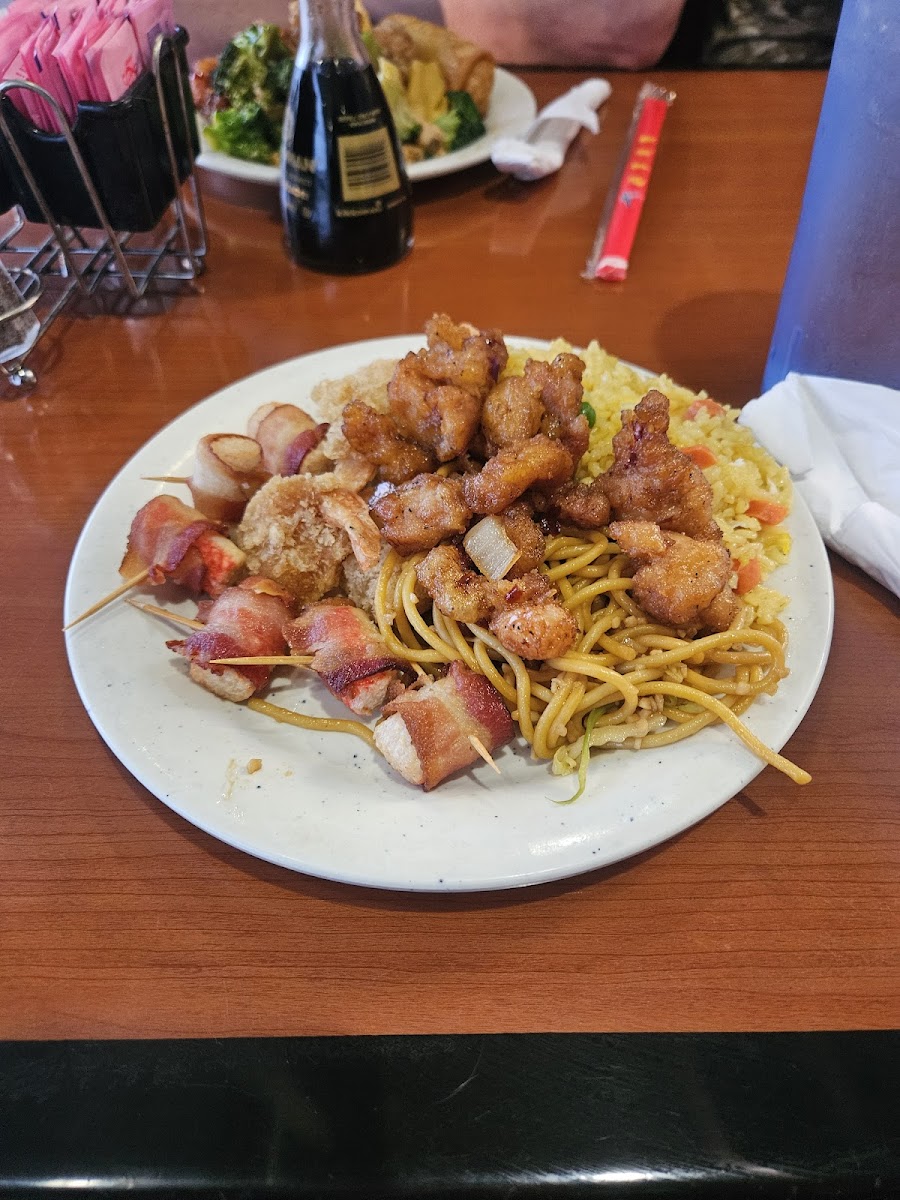 The buffet lineup offers a broad range of options suited for diners who appreciate variety, with highlights like crab legs, General TSO’s chicken, and an assortment of noodles and seafood items such as scallops and mussels. Fans of classic buffet fare will notice a mix of Americanized Chinese dishes side by side with more unusual picks like frog legs and seafood wrapped in bacon, making it a spot where you can casually sample a bit of everything without expectation of fine dining polish. The presence of traditional soups like hot and sour and wonton also reflects a balanced menu between satisfying comfort food and lighter, more traditional Asian flavors.